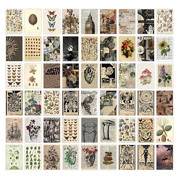 CodersParadise Pack of 54 Aesthetic Vintage Wall Collage Kit Posters - 4 x 6 Inches Poster for Wall Decoration - Glue Dots Included-Cardstock