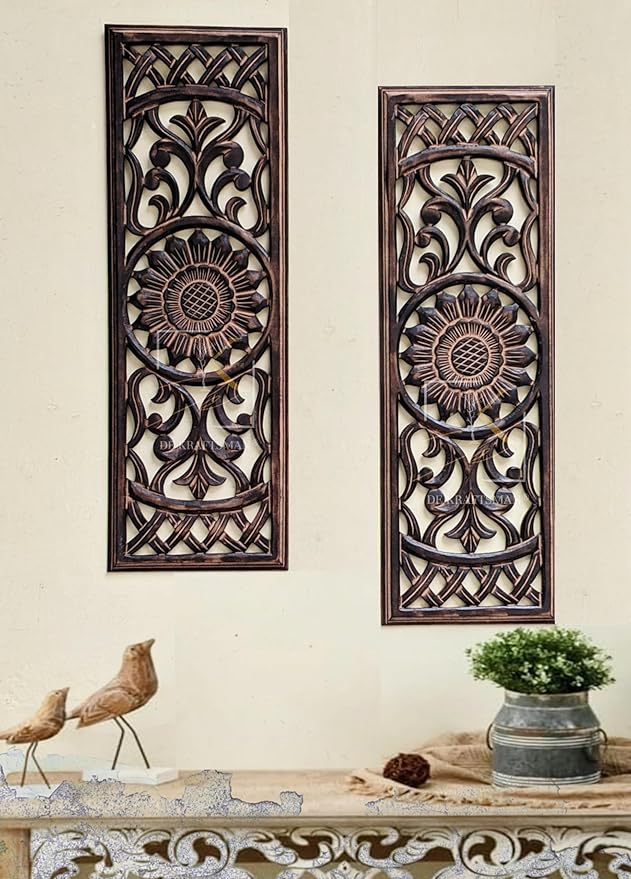 “DE KRAFTSMAN wall panels for living room/set of 2 pcs 24×8 inch wall decor MANDLAA design carved antique wall panel decor medium size (Recycled wood made)” has been added to your cart. View cart